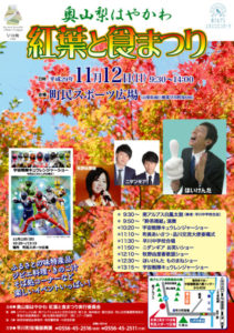 昨年まで「紅葉とそば祭り」の名前でしたが、今年より名前も場所も変わり、あらたにスタートをきります。