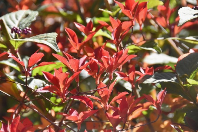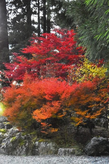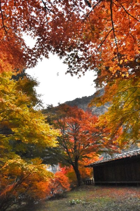 只今、奈良田古民家カフェ鍵屋周辺の木々が奇麗に色づいています。
