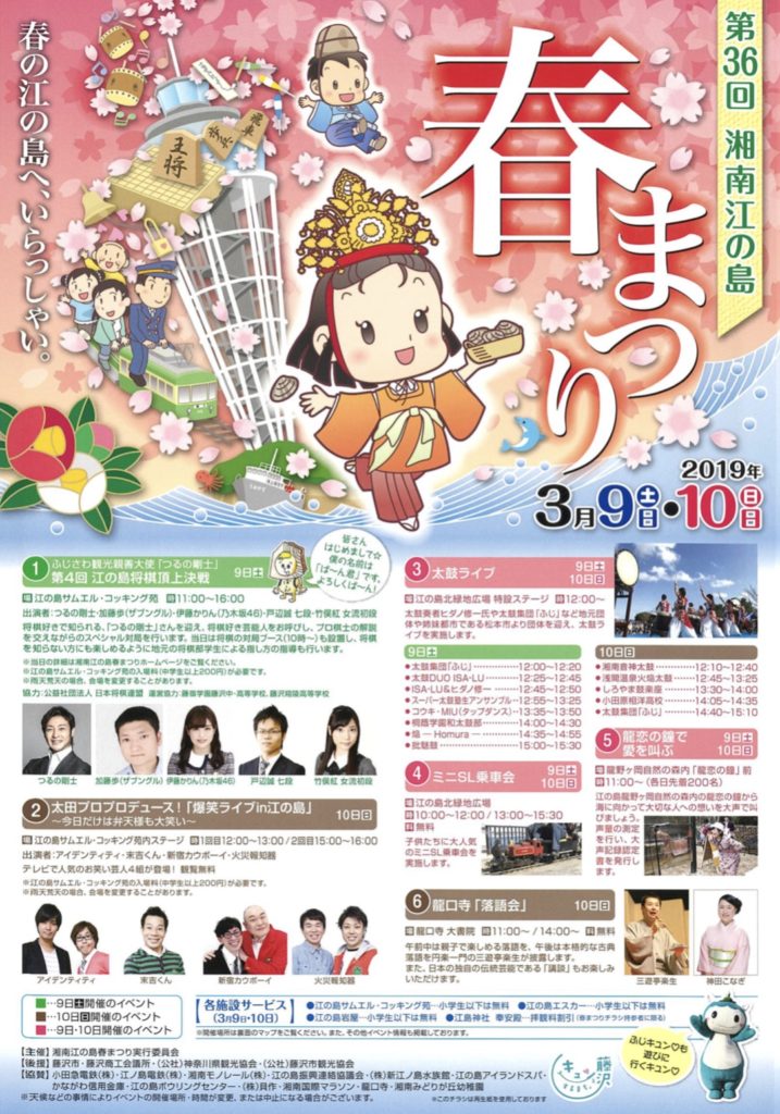 湘南江の島春まつり出店!! 2019年02月28日 今年も湘南江の島春まつりに参加いたします。 ベーコンや雨畑硯、バードコール作り体験ができます。 アンケートに答えていただいた方にはガラポンを回していただき、豪華商品が当たるかも!?!? ペア宿泊無料券やペア日帰り温泉入浴無料券などを用意しております。 3月9日(土)10日(日)と二日間に渡り行います。 ぜひお越しくださいませ♩♩ 出店者:ふるさと活性化財団★野鳥公園★日本上流文化圏研究所★硯匠庵★Lagimusim ・ チラシダウンロード