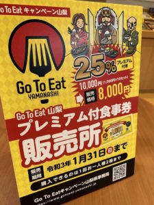 GoToEat山梨プレミアム商品券取り扱いのお知らせ!!