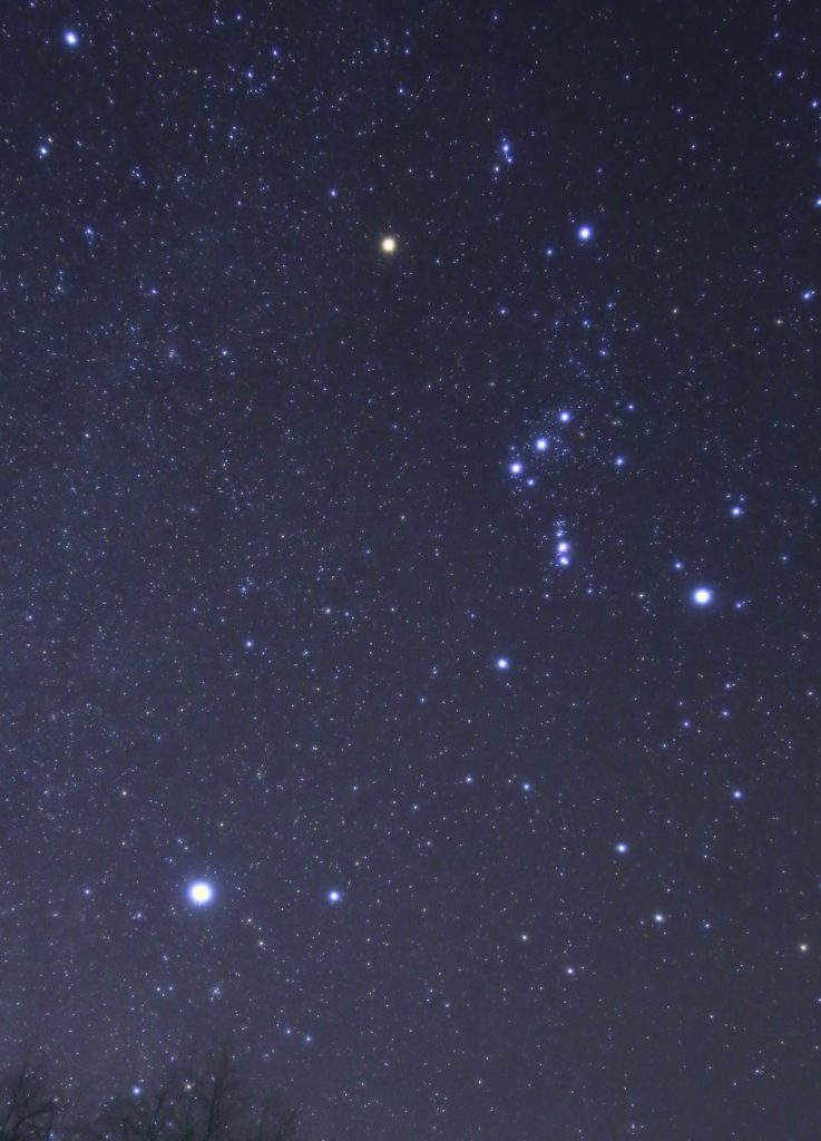 寒空に輝く7個の明るい星を繋いで出来る巨大な六角形は 淡く流れる冬の天の川も包み込んで 夜を渡って行きます。