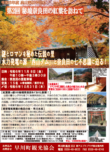 秋のイベント「第2回 秘境奈良田の紅葉を訪ねて」参加募集!