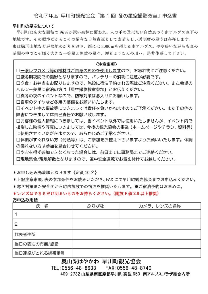 2026年1/24(土)星空撮影教室開催のお知らせ