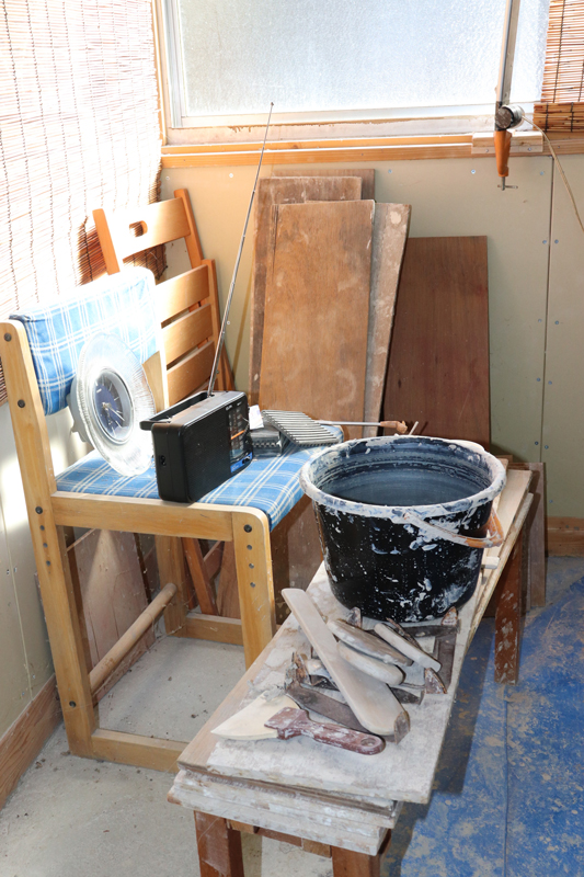 興味を持ちこれだと思ったら「すぐに行動するのは自分のスタイルです」と言う米山さん。焼き物の製作拠点を探す為あちらこちら訪ね歩き、人の紹介を経て現在の早川町雨畑に移住したのですが、この地に決めた理由の一つにここ早川を拠点とすれば周辺地方都市が行動圏内に入ると思ったというもの。車で2時間程の移動なら苦にならないね、と笑いながら話されました。米山さんの創作活動を支える大切なものの一つがこの体力と行動力、フットワークの軽さの様に思います。