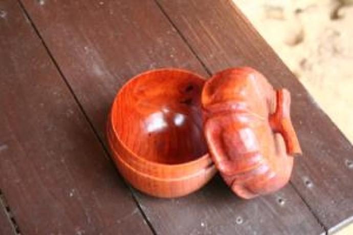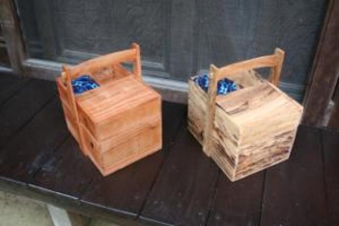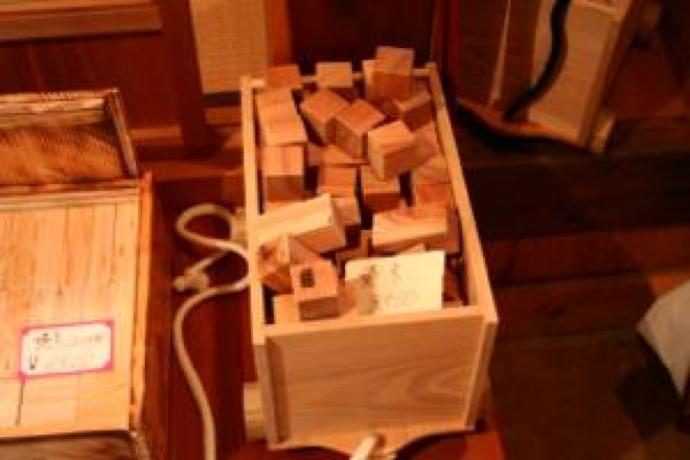 家具・仏具などの制作の合間に作った小物類の茶器を展示・販売。天然の一枚板のみを使用し、木目を生かした作品を制作しています。