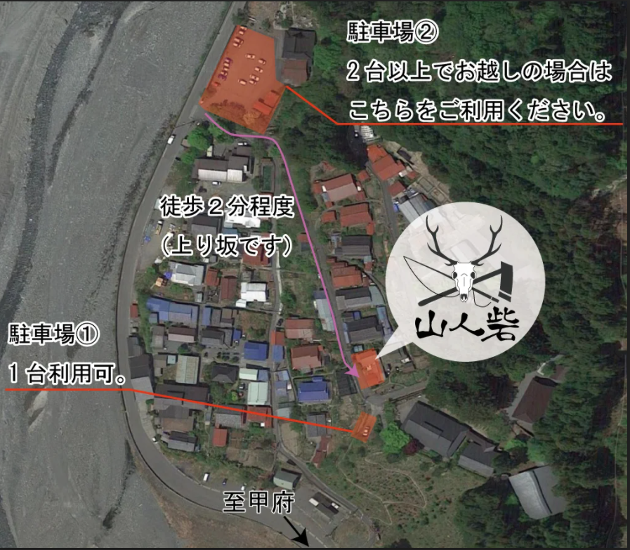 | 駐車場 | 屋外1台(2台以上でお越しの方は奈良田の里駐車場をご利用ください) |