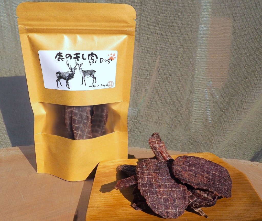 | 商品案内 | 早川町の山の鹿だけで作った犬猫用ジャーキー。 鹿を獲り商品にするまで、品質や味を自分たちで確かめながら全工程を自社で行った安心安全のおやつです。 独自製法で香りと旨味を最大限に残しているので、ペットの食いつきも抜群です。手で簡単に割れるので、歯の悪いシニア犬やしつけのご褒美など、多用途にご利用いただけます。 |