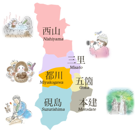 早川町は昭和31年に、6つの村が合併して誕生しました。町制施行以来60年が過ぎましたが、今なお旧村ごとに特徴が見てとれ、その豊かな個性が早川町の魅力につながっています。ここでは、旧村(地区)ごとの特徴や見どころを紹介していきます。
