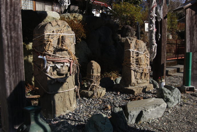 曹洞宗神王山常昌院の門前には、集落の繁栄を願って御安置された「しばり地蔵」があります。細い縄でやさしく縛れば願いが叶うとされ、叶ったらお礼に縄を解きに来るのが慣しです。