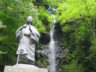 秋になると見事な紅葉で彩られる見神の滝。落差42mのこの滝を見上げると、滝壺が2段になっているのがわかります。上の滝壺には金があるといわれ、何人かの若者がこれを取って長者になろうと試みましたが、断崖絶壁のためすべて失敗したという伝説が残っています。滝の右側には、岩をくりぬいただけの祠があり、右手に剣と左手に数珠を持った不動明王の石像が祀られ、地元では不動滝とも言われています。