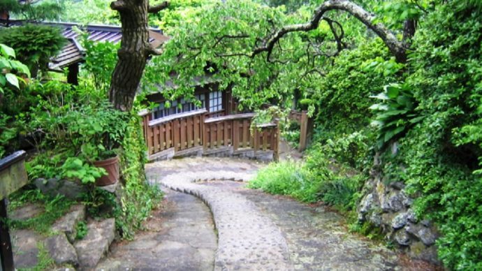 赤沢宿は、身延山と七面山を結ぶ往還の途中に位置する宿場町で、七面山への参詣客を迎え入れる宿場として栄えました。江戸後期から明治期に建てられた旅館が数多く残り、平成5年に国の重要伝統的建造物群保存地区に選定されています。2月、3月には集落内に群生する福寿草・節分草、4月にはしだれ桜、6月には紫陽花など、四季折々の花が楽しめるのも魅力です。