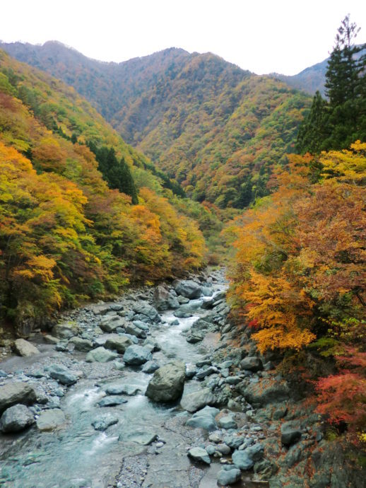 早川町最北の地区です。早川を上流に遡るにつれ、大きな岩が増え、川幅も狭くなります。この辺りは「早川渓谷」と呼ばれ、町内随一の風光明媚なスポットとして観光客にも親しまれています。ミツバツツジの早春と木々が萌え始める新緑、秋深まった頃の紅葉などの渓谷美が楽しめます。