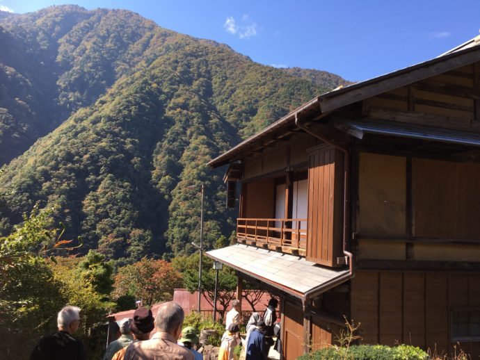 妙福寺の隣にある古民家の無人休憩所。1階から2階を自由に見学することができる。2階からの七面山の眺めは最高!