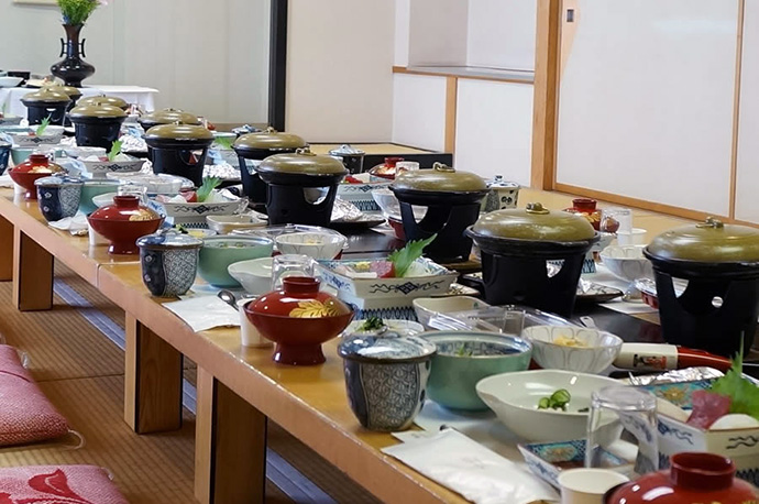 信徒さんが利用する大広間には、祖父母の代から掛けられている日蓮宗の「御曼荼羅」がある。「江戸時代から祖父母の世代まで、七面山をとても大切にしてくれていた。今の旅館があるのもその時の功徳である」と、先人へ思いを馳せ、日々感謝している。そして、先人が築いたものを大切にしながら、お客さんの新たなニーズを汲む発想と行動力で、最近では温泉を引き、新たに入浴施設を建設中である。 入浴施設がオープンした暁には、宿泊者は元より、日帰りのお客さんにも温泉に浸かり、疲れを癒して帰路についてもらいたい。そんな思いに、女将の心意気を感じる。そして、「働く人は宝!」、と女将は意気込む。日々旅館の運営を支えている従業員も、大切にすることを忘れない。